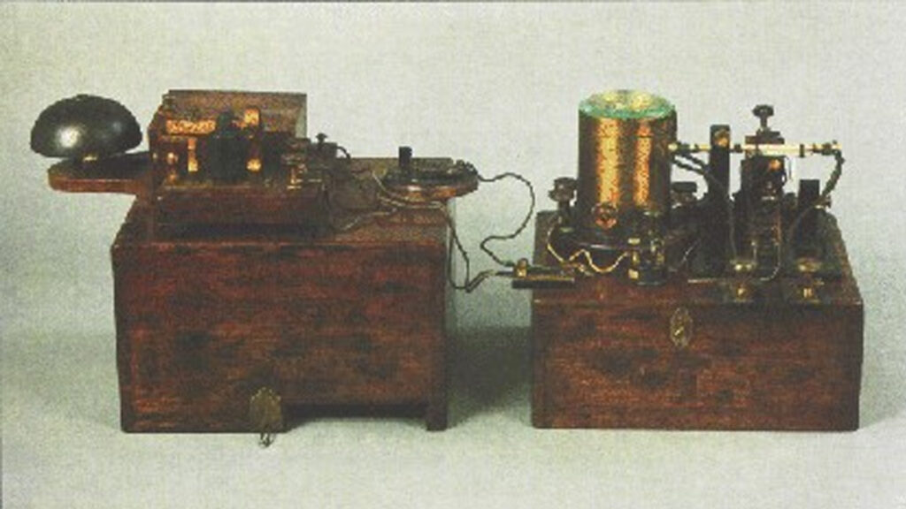 For more details about the coherer, see Allen Mills, “The coherer: with simple demonstrations of the generation, propagation, and detection of radio waves”, downloadable at https://www.researchgate.net/figure/Coherer-Marconi-pattern_fig4_230901202.